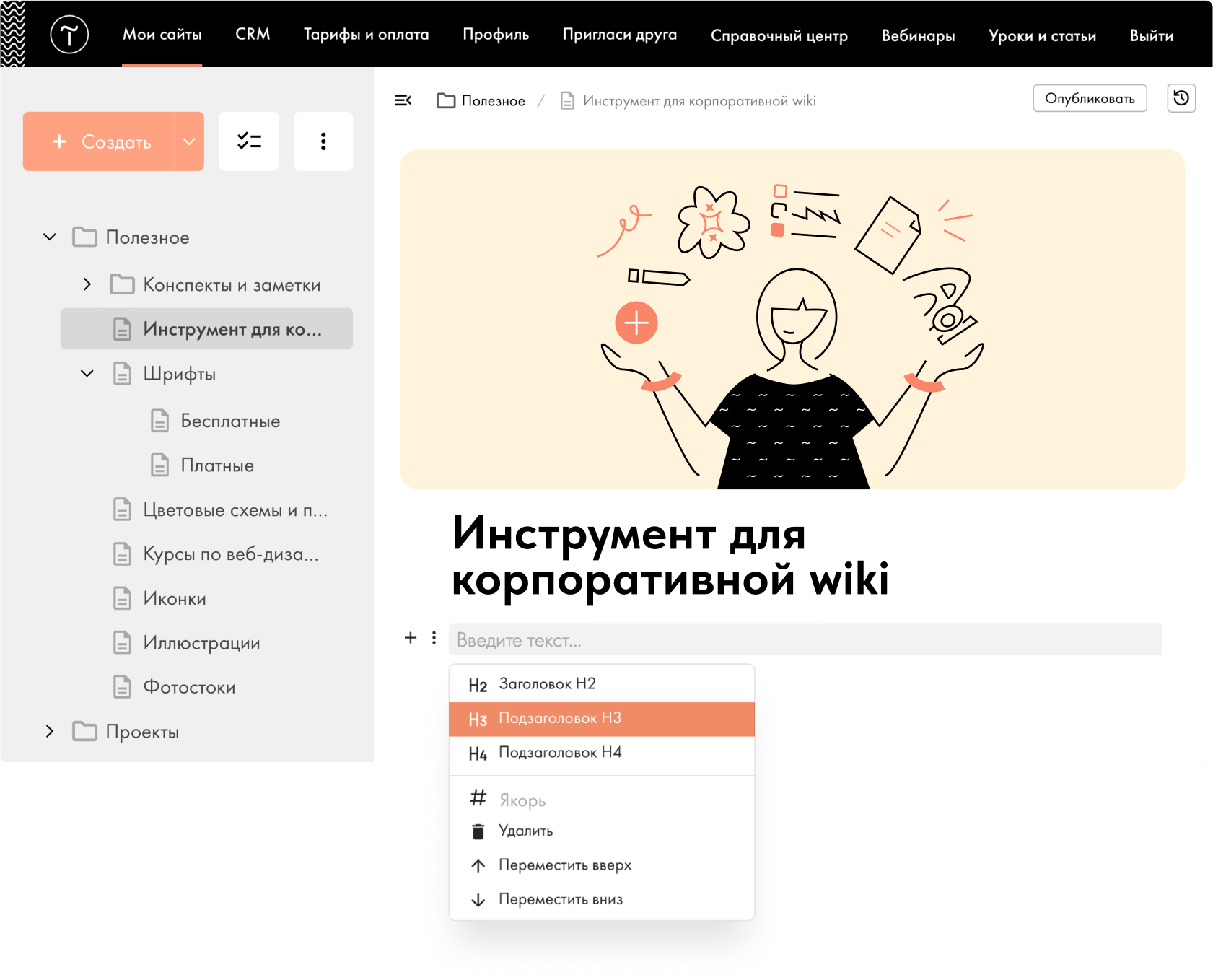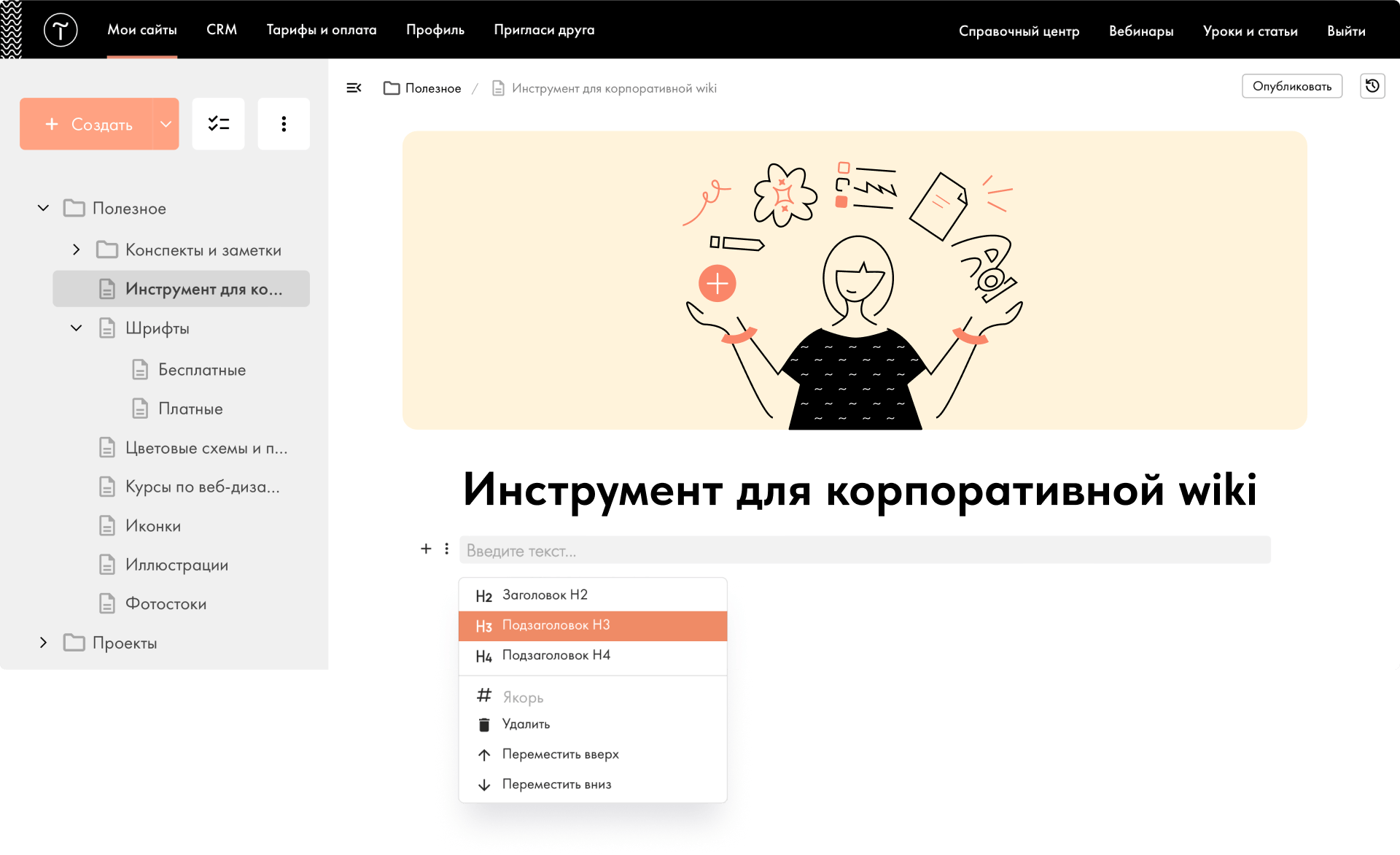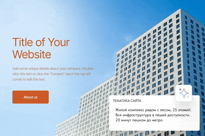 10 лет назад мы придумали новый способ создания сайтов, где процесс похож на игру и любой может почувствовать себя дизайнером. Теперь тысячи людей каждый день заходят на платформу, чтобы создавать впечатляющие проекты: сайты для бизнеса, лендинги, интернет-магазины, спецпроекты и многое другое.