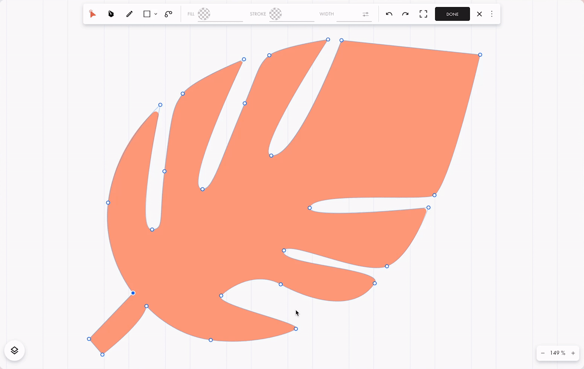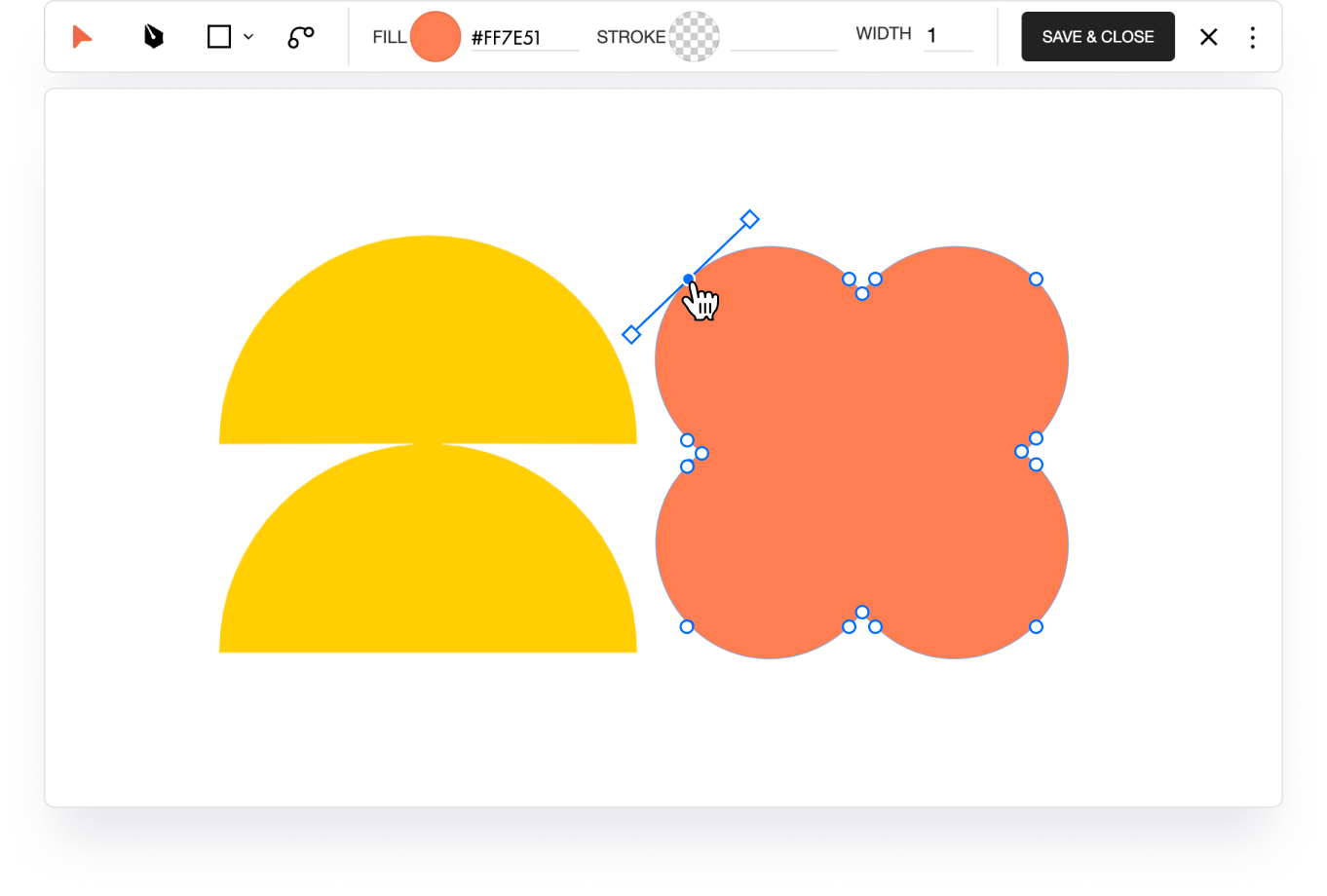 Мы оптимизировали векторный редактор, чтобы работа в нём была удобнее и стабильнее. Также стало проще сгибать векторные линии и менять радиус скругления. Чтобы скруглить углы базовых фигур или нарисованного вектора, кликните на нужную точку и потяните за radius.