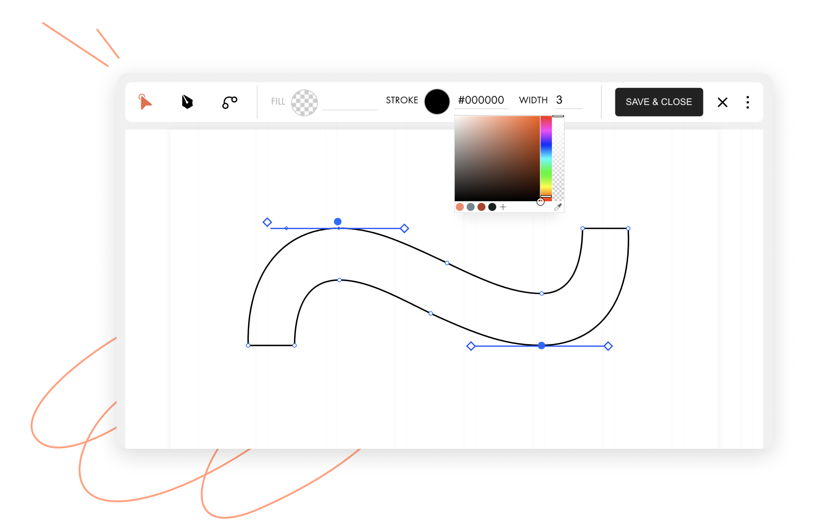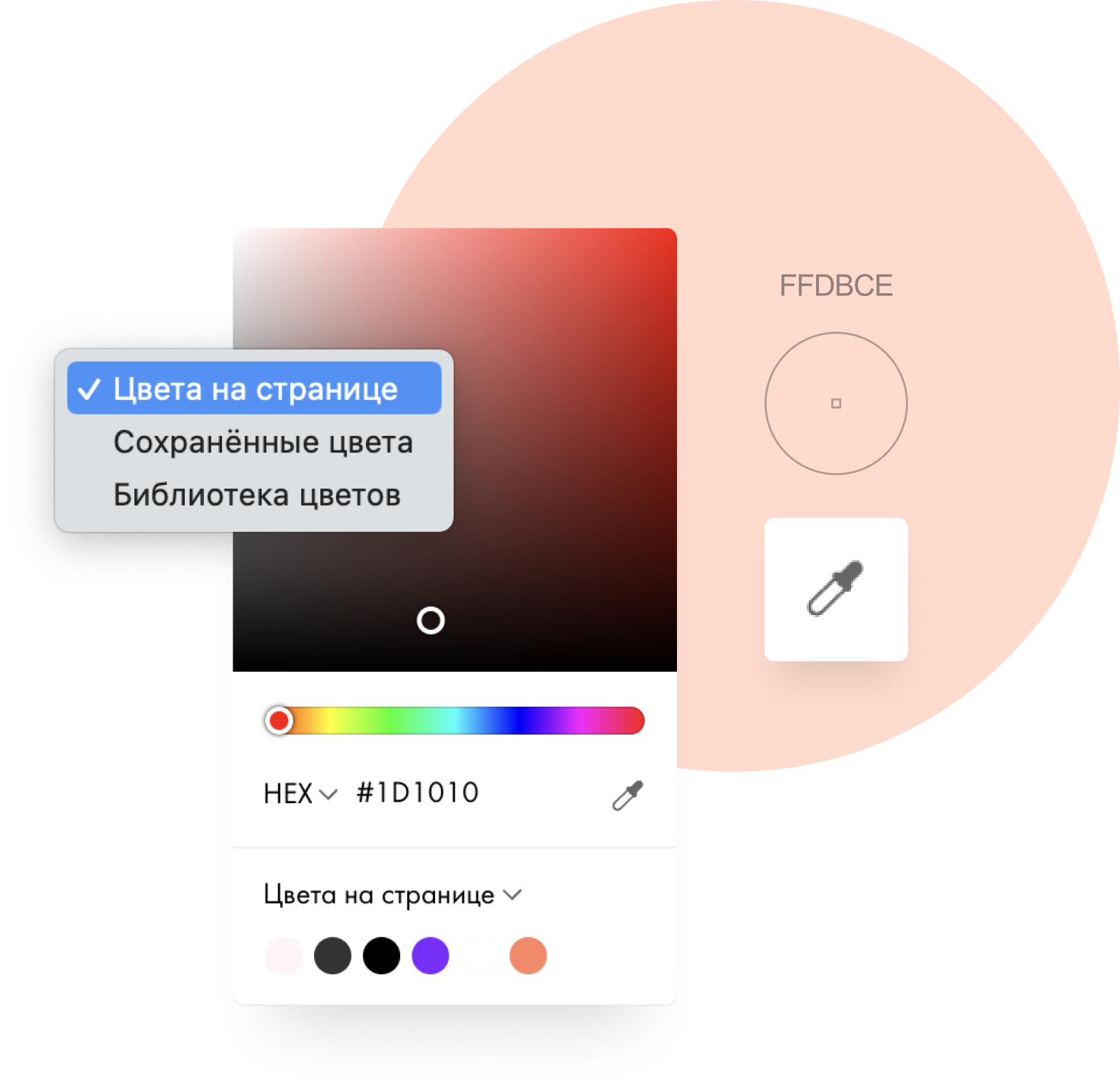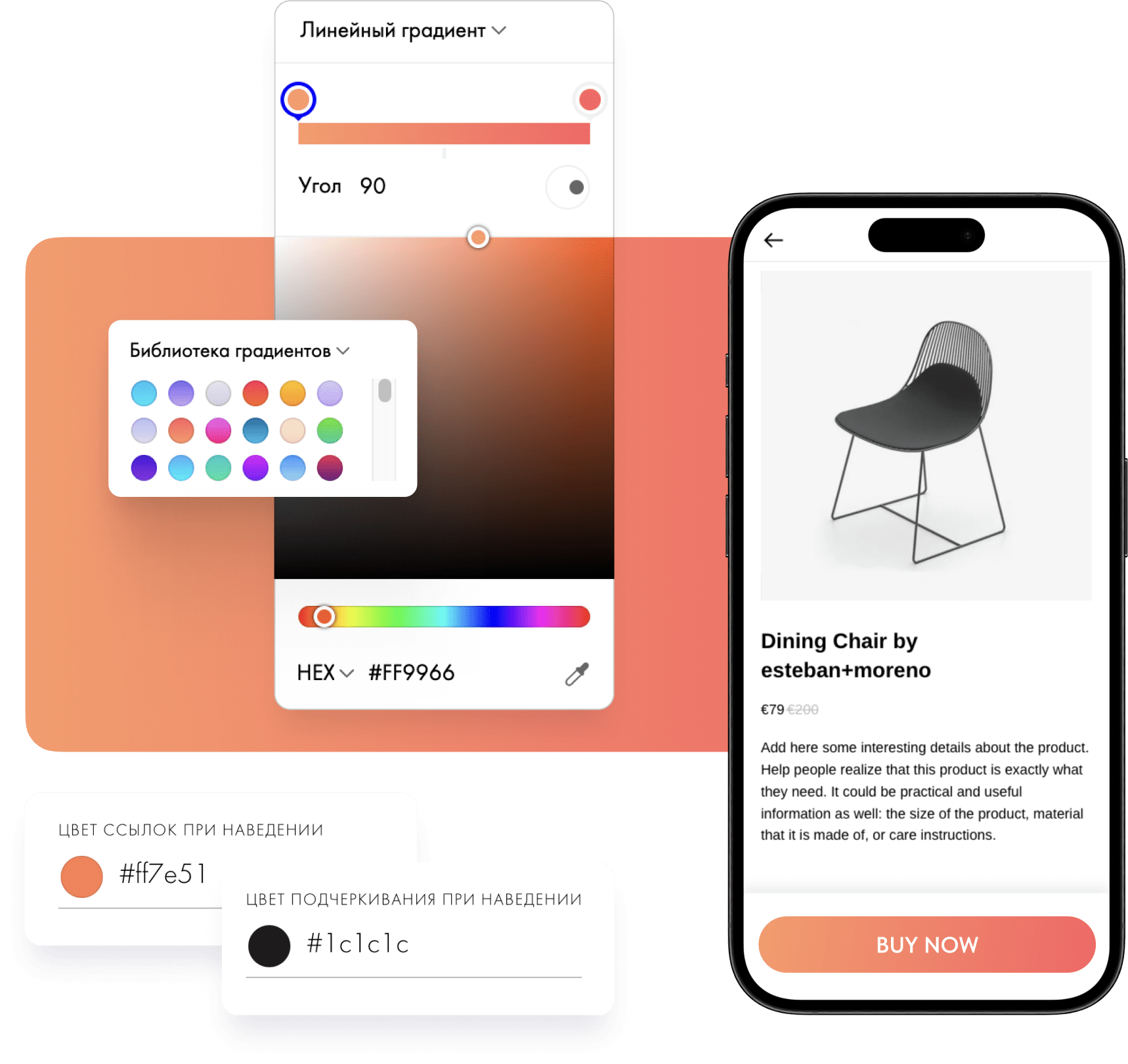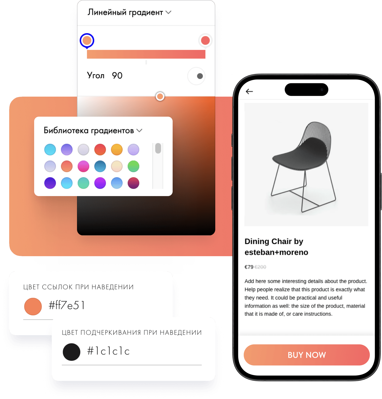 Для векторных элементов вы можете добавить линейный и круговой градиенты. Работает с заливкой и обводкой элементов. Также можно импортировать SVG-элементы с градиентами из других графических редакторов.