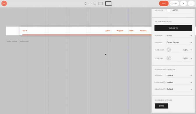 Настройка зафиксированного Zero Block на странице для адаптивов