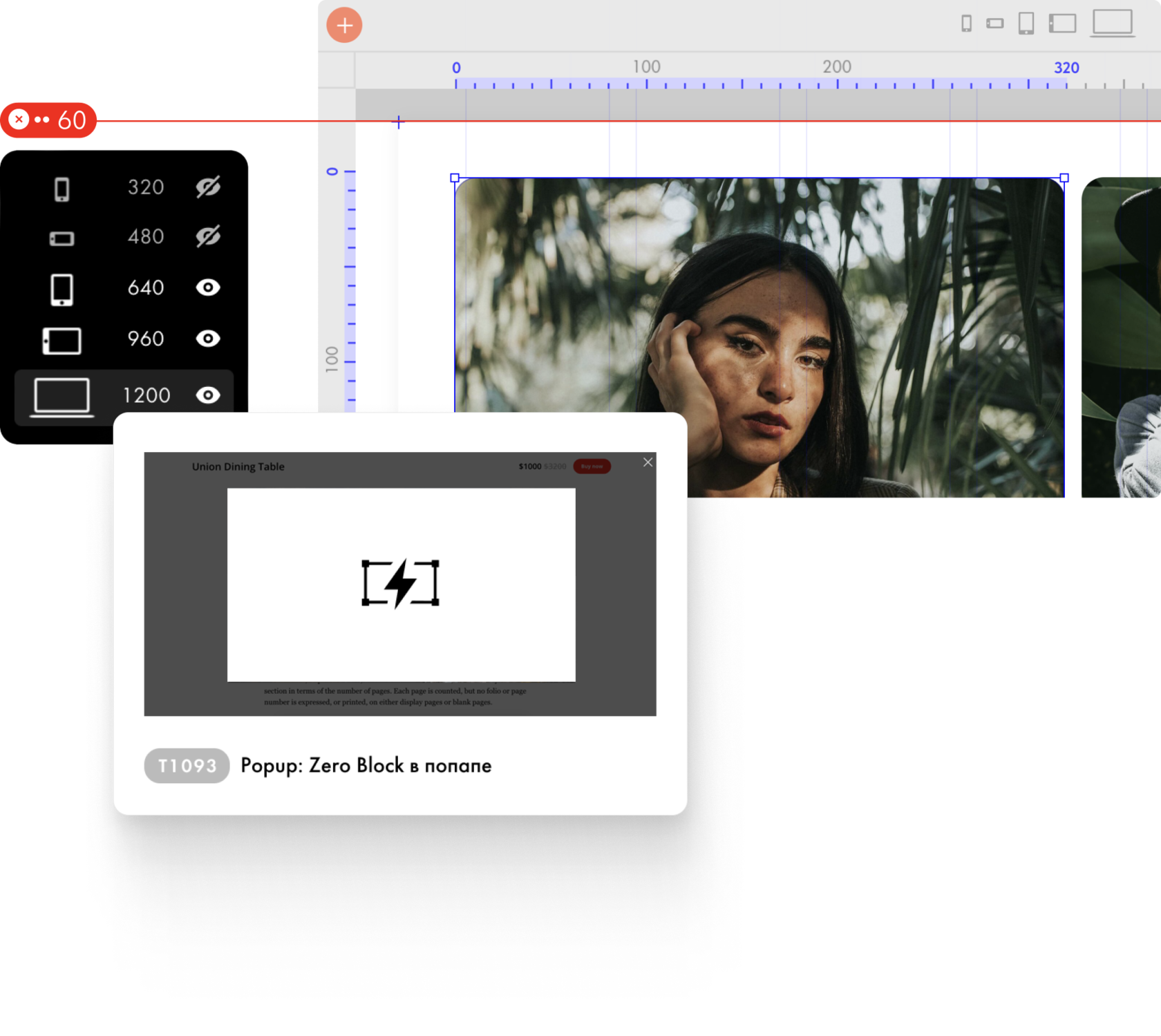Размер элементов интерфейса редактора Zero Block больше не зависит от приближения/удаления рабочей области. Направляющие, гриды, обводки элементов и линейки были технически переработаны для вашей комфортной работы в редакторе.