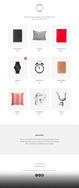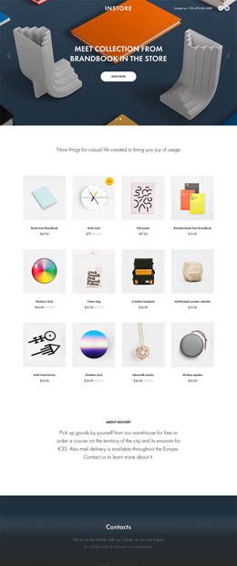 | Покупка сразу нескольких товаров через корзину Андрей создал свой магазин InStore и продает уникальные подарочные товары, аксессуары и другие приятные мелочи. Фото каждого товара он загрузил в карточки, указал название, цену, отметил параметры товаров и товары со скидкой. Теперь покупатель может выбрать несколько наклеек, сумку, пару классных блокнотов желтого, синего или красного цветов, положить их в корзину и оформить заказ с доставкой за несколько секунд. |